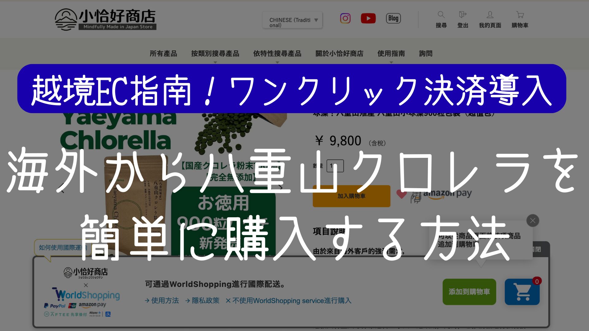 海外228ヵ国からワンクリック決済を通じて、日本の最高品質である八重山クロレラを手に入れることができます。この新しいお買い物体験を通じて、家族そしてあなた自身の健康な毎日への第一歩が始まります!