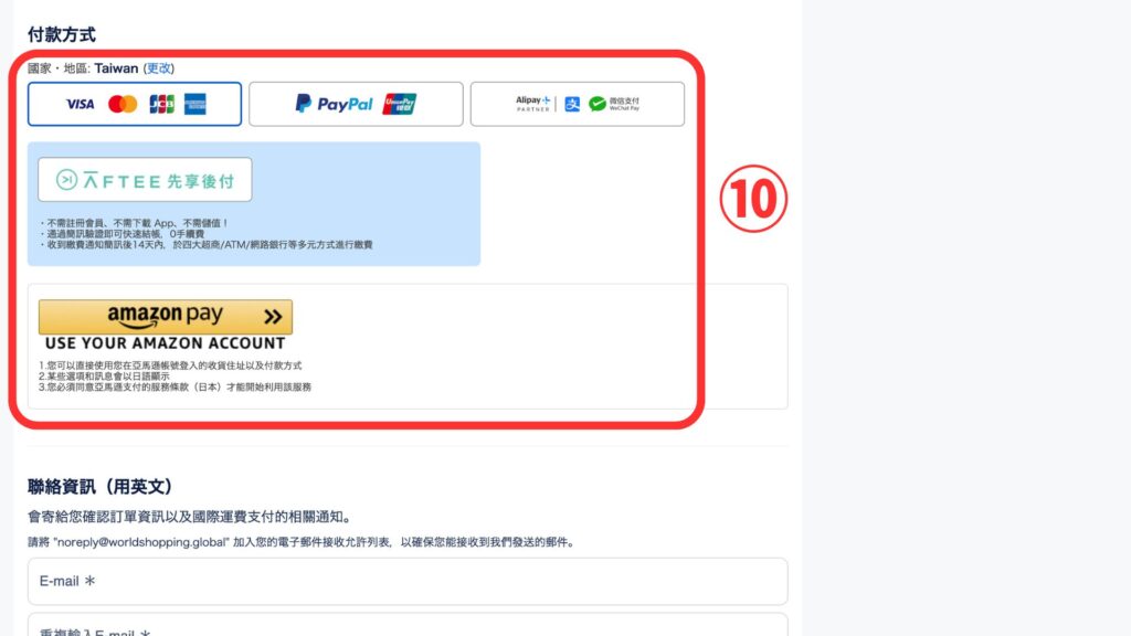 最後に、お好みの決済方法を選択します:ちなみに台湾の場合は