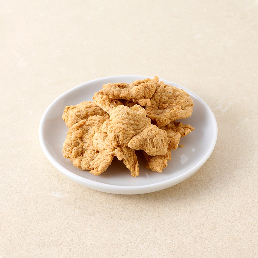無添加・国産大豆100%の大豆ミートです。大豆の油分を圧搾法でカットしておりますので長期保存にも適しています。