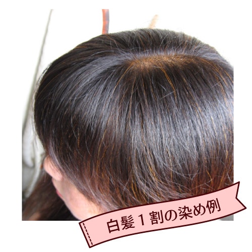 白髪がオレンジ系茶褐色に染まり、黒髪は変わらないか、やや明るくなります。